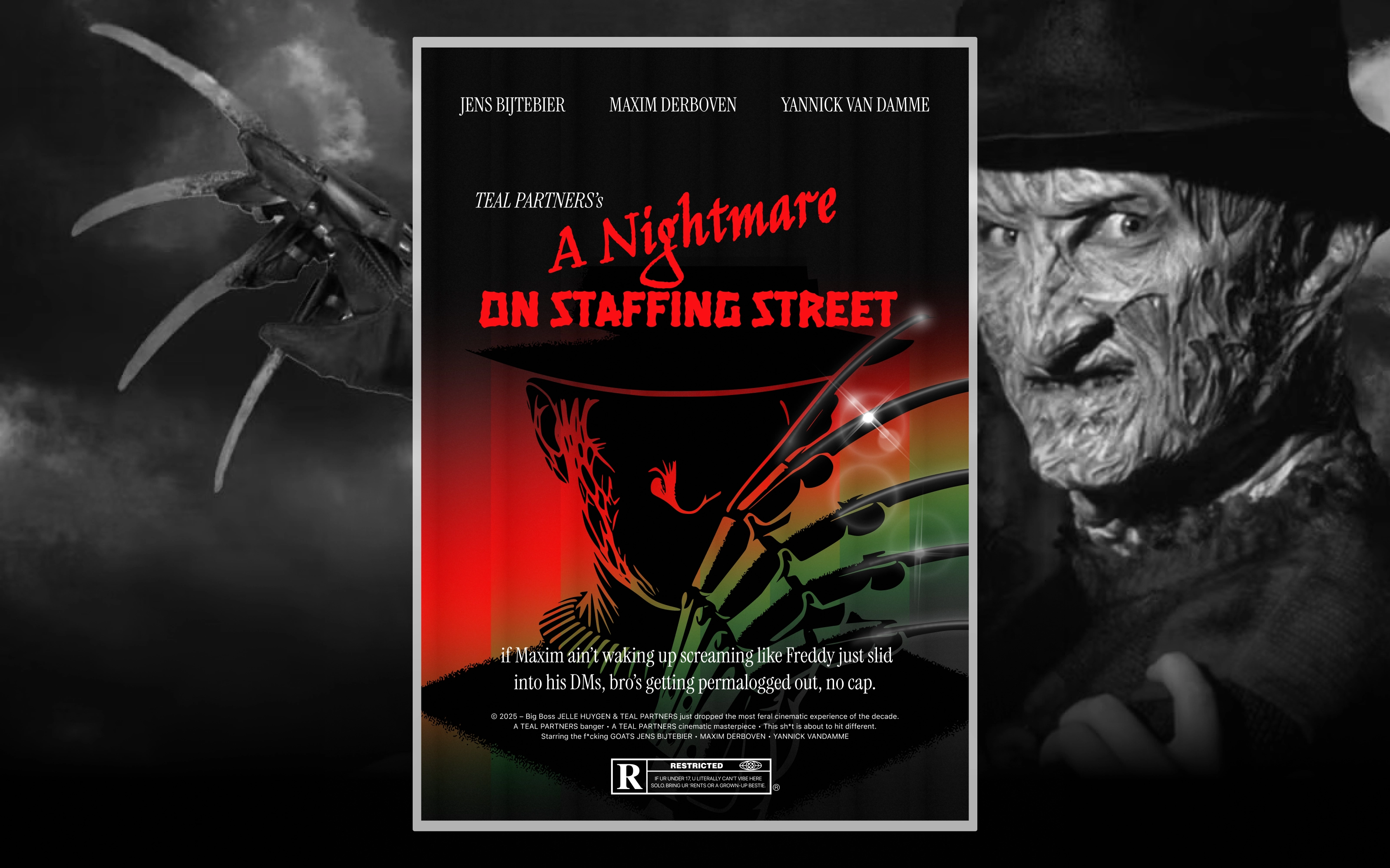 In the nail-biting ‘A Nightmare on Staffing Street’, Jens, Maxim, and Yannick also venture naively into the wondrous world of staffing, where nothing is as it seems. Thanks to their blood, sweat, and tears, they succeed in integrating and expanding the digital HR landscape with portals for all stakeholders. Discover how they turned this timeless horror classic into an unparalleled box office success, in collaboration with SD Worx Staffing.